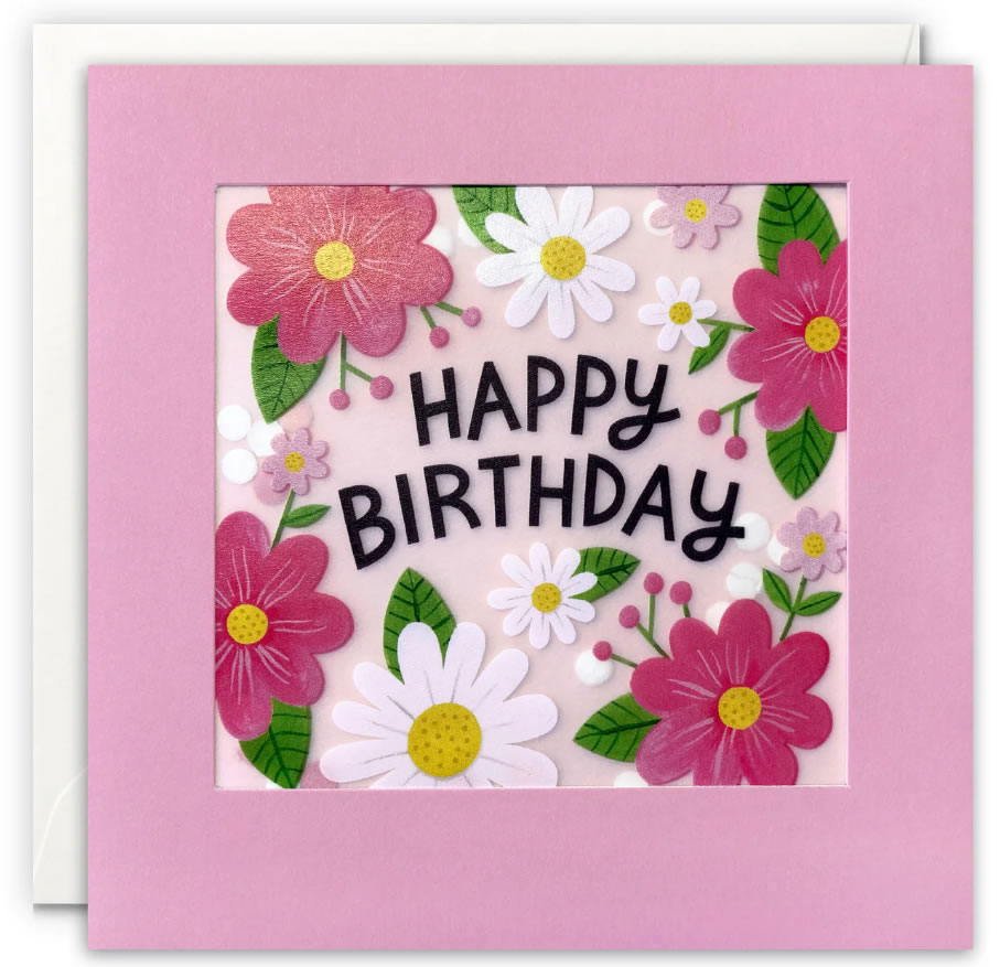 Pink and White Flowers Birthday Card with Paper Confetti Paper Shakies by James Ellis