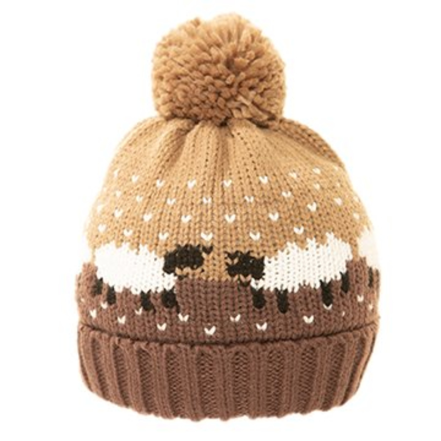 SSP Ladies Sheep Print Knitted Bobble Hat