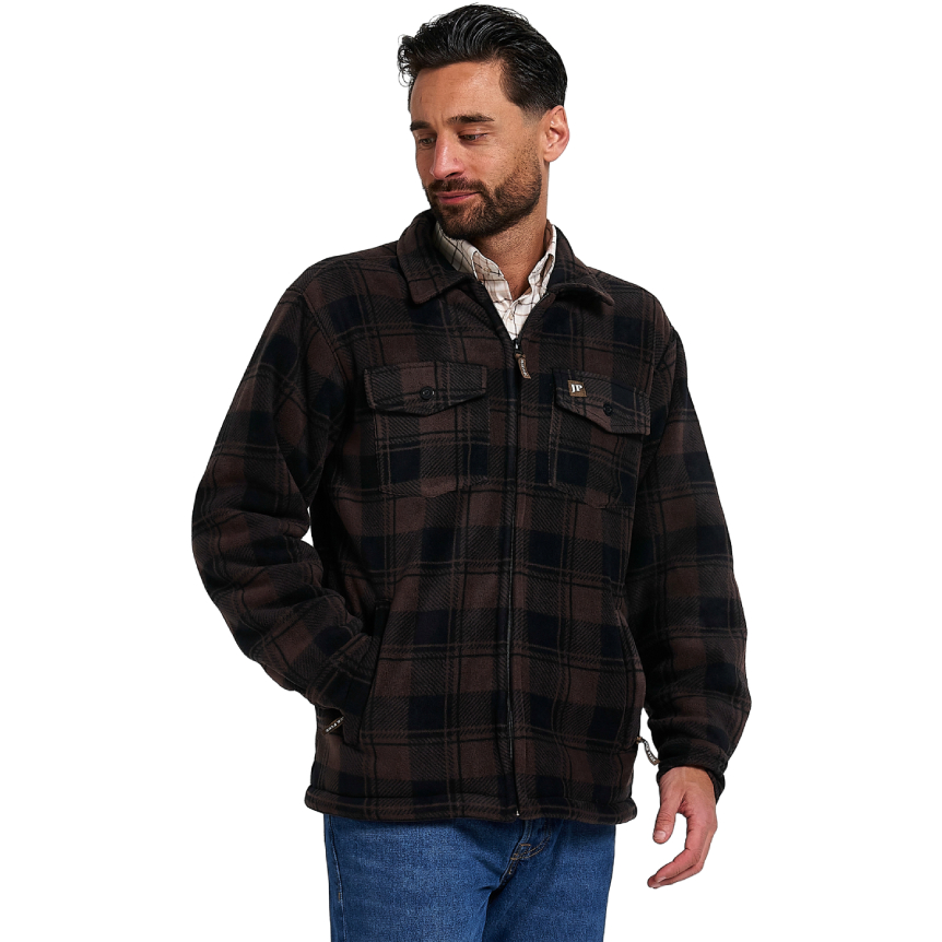 Hoggs Of Fife Arran Microfleece Lined 100% Cotton Shirt Navy/Brown