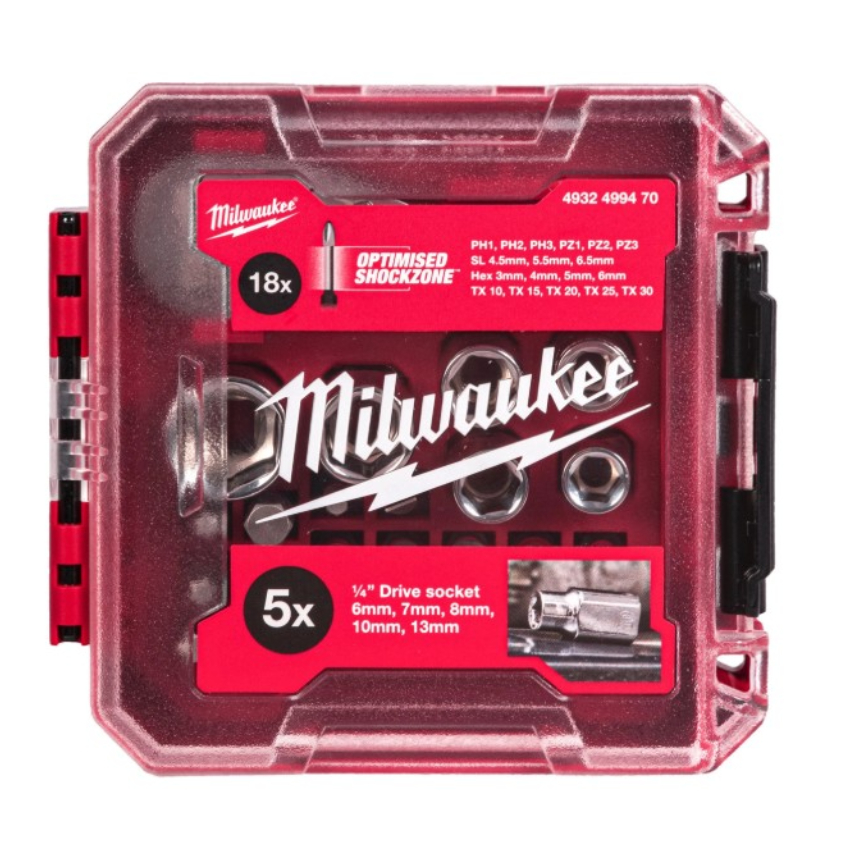 Milwaukee ¼ Drive Compact Ratchet set in Packout Compatible Box 25 Pieces