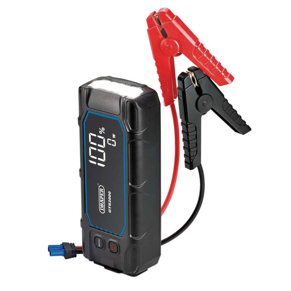 This powerful 12V lithium jump starter features an easy-to-read LCD display and is fully protected against short circuit, overload and reverse polarity. Its compact design allows for easy storage in a glovebox, and its lightweight construction makes it highly portable. Additionally, it includes an integrated emergency LED flashlight with three light functions high/SOS/strobe. There is a built-in power bank for charging mobile devices on the go and it is equipped with 1 x USB-C port and 2 x USB ports. This jump starter is capable of starting an average 10 litre petrol engine or 8 litre diesel engine. Supplied inside a sturdy zip-case for convenient storage.