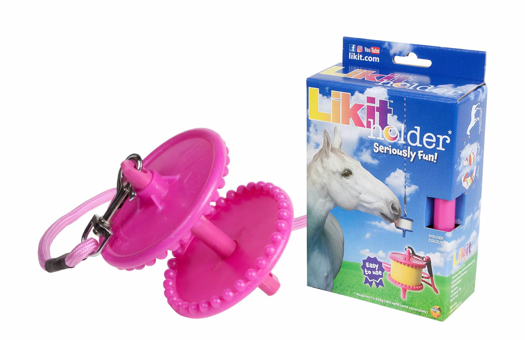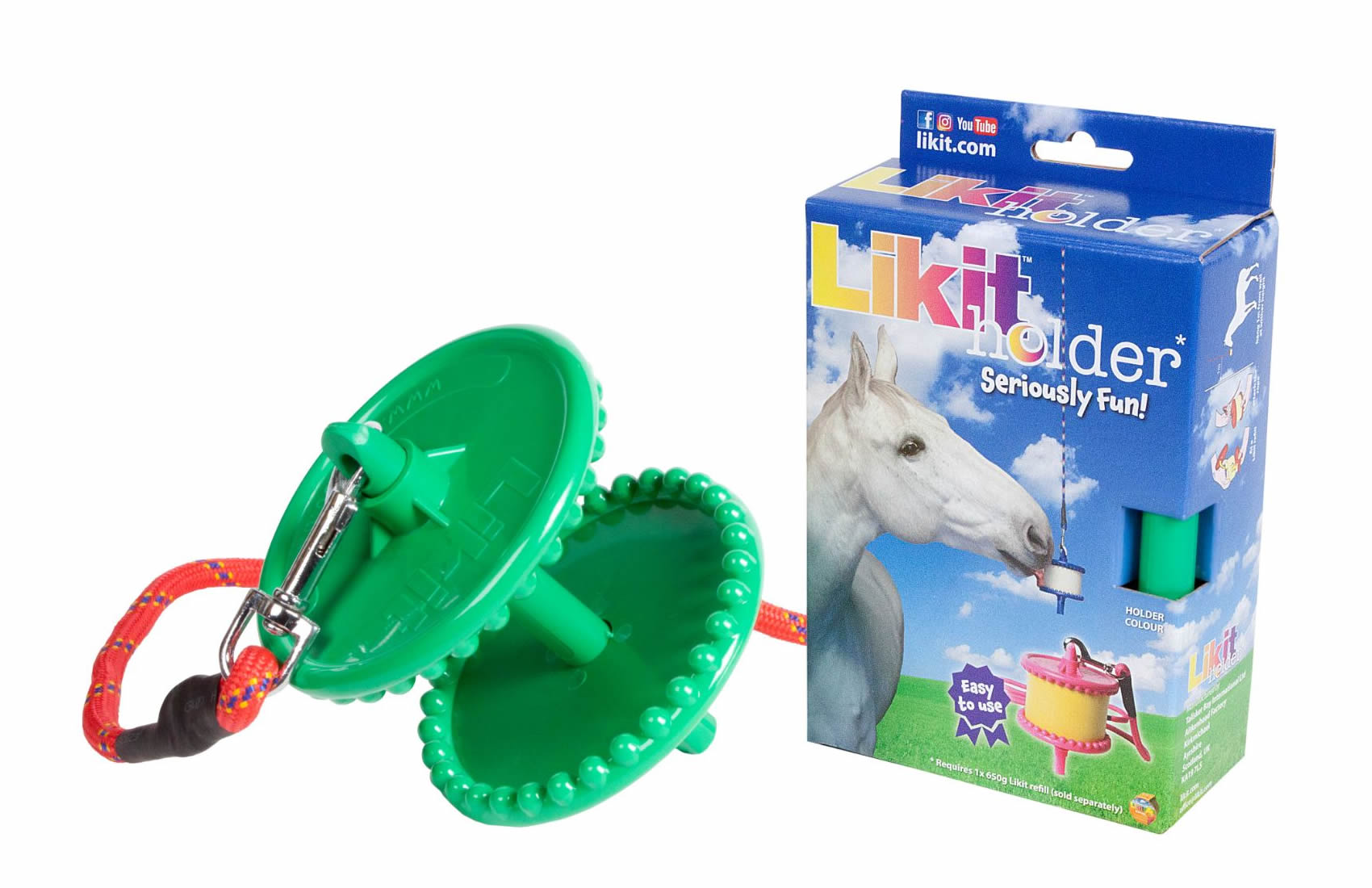 Hanging type large likit holder, strong nylon rope, keeps you horse amused for hours.