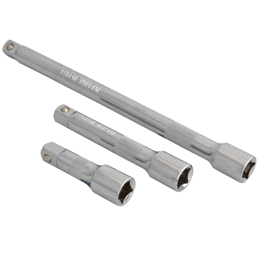 The Blue Spot Tools 1/2 Extension Bar Set 3 Pieces is manufactured from heat treated chrome vanadium for increased durability. Knurled handle to provide a secure grip.