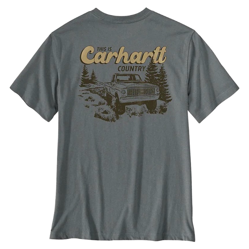 From jobsite mornings to weekend plans, this relaxed-fit tee keeps comfort front and centre. Made from lightweight vortex jersey, it features a rib-knit crew neck and cuffs, a chest pocket, and a clean cover-stitched hem. A Carhartt “Truck” graphic on the back adds that classic workwear attitude.