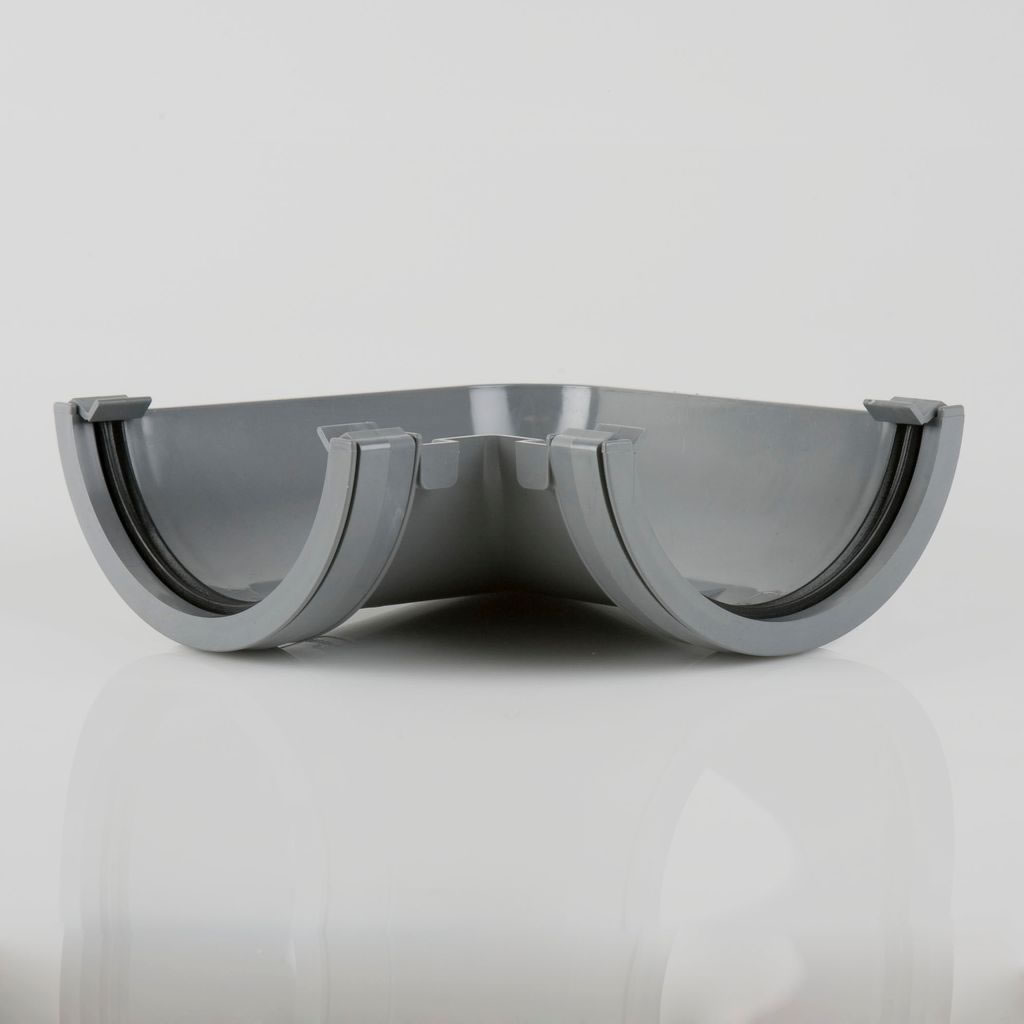 Designed to allow the continuation of the 112mm Roundstyle gutter system at 90° right angles. It features rubber seals and integral clips at both sides for fixing to the gutter.