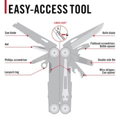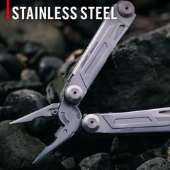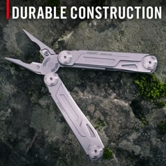Designed for durability and versatility, the Mackenzie multi-tool offers 13 essential tools in a sleek, compact form. With a rugged stainless-steel frame and tools like locking pliers, a 3-inch locking blade, and a spring-loaded grip, it’s built to tackle heavy-duty tasks with ease. The Mackenzie is designed for single-handed use, allowing you to keep a firm grip on your work while accessing its powerful tools. For convenience, the multi-tool includes both a pocket clip and a lanyard loop, offering versatile carry options whether you're in the field or on a job site. Perfect for professionals and outdoor adventurers, the Mackenzie is the go-to tool for jobs big and small.