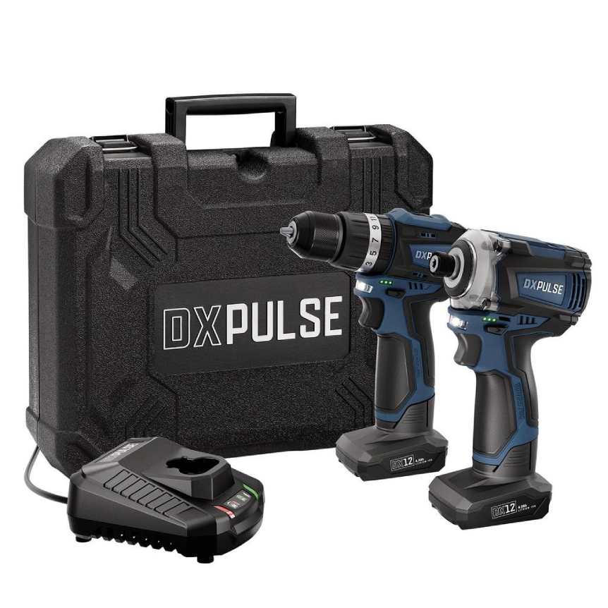 DXPulse 12V Brushless Combi Drill & Impact Driver Kit, 1/4 Sq. Dr., 2 x 4.0Ah Batteries, 1 x Fast Charge