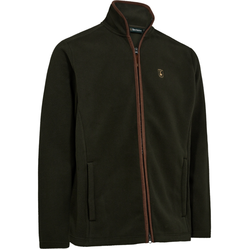 The Cumbria Fleece Jacket blends traditional outdoor style with soft, silent performance. Ideal for layering over a button-up shirt in the field or for everyday wear. Made from fleece with anti-pilling treatment, it offers lasting warmth and a premium feel. Artificial suede trim at the collar and shoulder adds a refined touch, while the embroidered logo on the chest keeps the look clean and timeless.