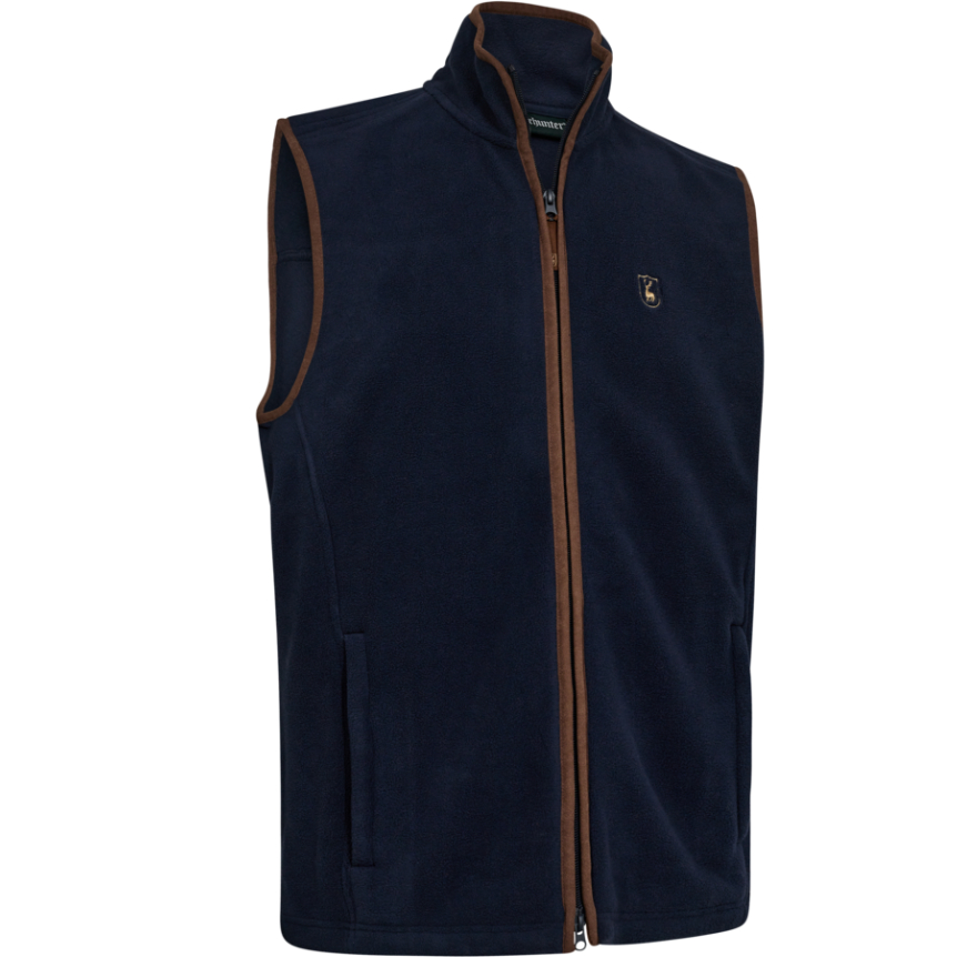 The Cumbria Fleece Waistcoat blends classic country style with quiet functionality, perfect for layering over a button-up shirt on cool days. Made from recycled polyester fleece, it offers soft warmth with an anti-pilling finish for long-lasting wear. Artificial suede trim adds a refined touch to the shoulders and collar, while the embroidered chest logo keeps the look clean and traditional.