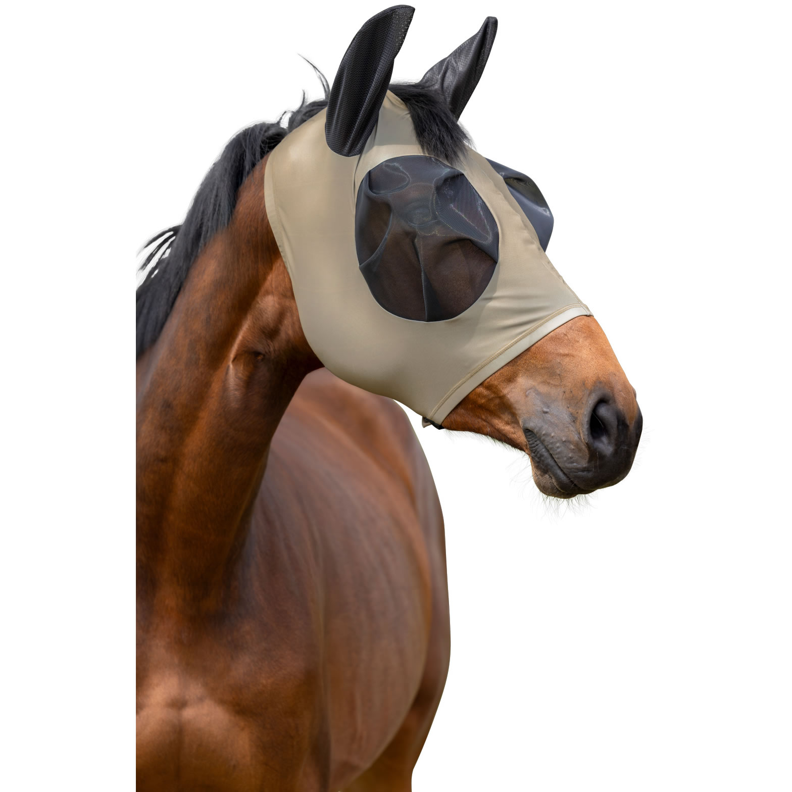 • tight-fitting fly mask with generously moulded eye area
