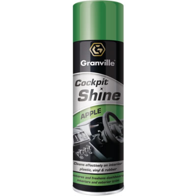 Granville Cockpit Shine is a silicone based Cockpit Shine that restores that 'new look shine' to all interior and exterior trim. Fragrances leave a pleasant aroma and an anti-static finish that reduces dust build-up.