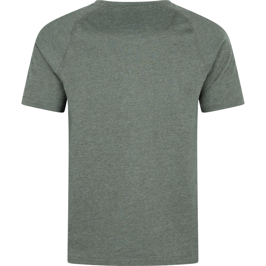 The instinct short sleeve T-shirt in green mélange is crafted from a brushed 170g/m² single jersey, offering a soft, durable fabric. It feels comfortable against the skin while withstanding the rigors of active outdoor use. The brushed finish enhances warmth and adds a premium touch, making it ideal for layering during cool mornings or worn alone on warmer days. It's designed for freedom of movement and has a classic crew neck and raglan sleeves.