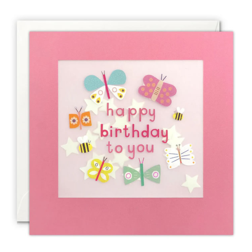 The confetti moves around when you shake the card. The card has a blue border and comes with a white laid envelope measuring 130 x 130 mm. It is printed in the UK on paper made from wood pulp sourced from sustainable forests.