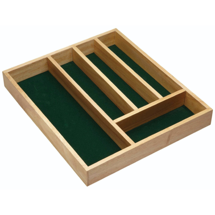 The flat-style wooden cutlery holder tray fits neatly into most kitchen drawers. It’s perfect for those who like traditional, natural style or simply those who want a bit of peace and quiet. Thanks to its felt lining, it eliminates that annoying clunking sound when cutlery hits a plastic tray!