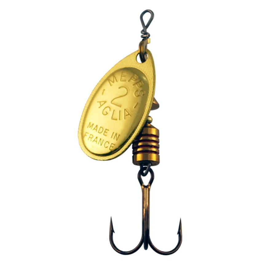 The Mepps Aglia spinner is the original French spinner. It is the World's #1 Lure. More trophy fish have been caught on the Mepps Aglia than any other lure. The Mepps Aglia is extremely popular with fishermen world-wide because it will catch just about any freshwater fish and many species of saltwater fish.