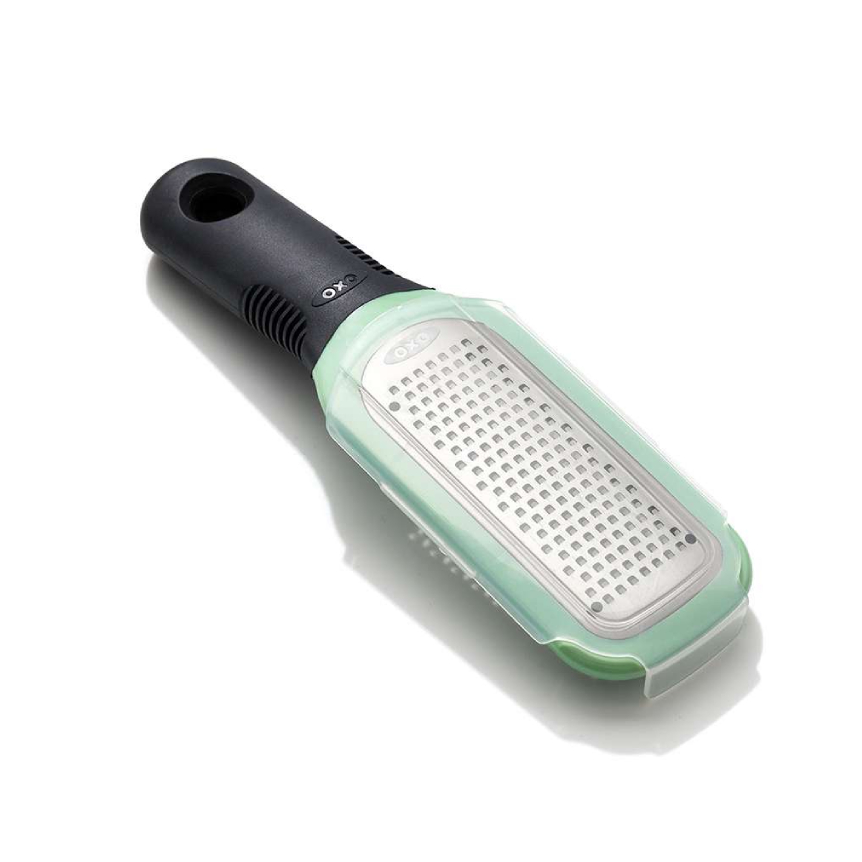 The soft handle provides a comfortable grip, and the non-slip foot helps stabilize the grater as you work. The convenient, Snap-On cover doubles as a scraper to get every bit of paste off the grater and into your recipe without getting the scent on your hands. Top-rack dishwasher safe.