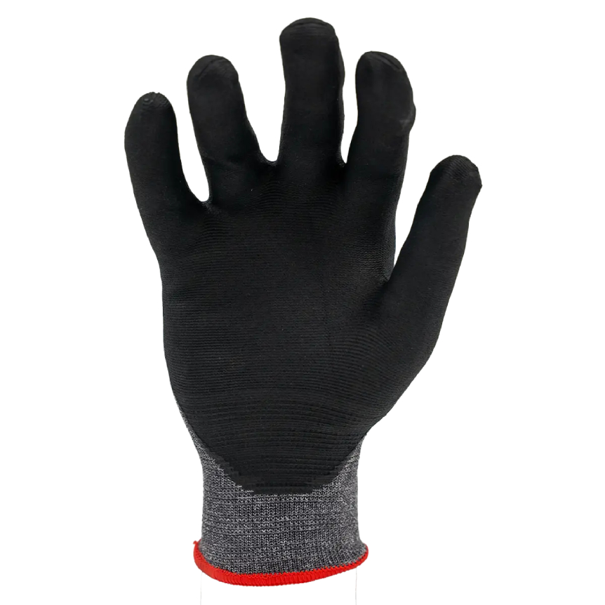 Cut resistant level 5 glove with reinforced leather palm for enhanced grip and abrasion and to prolong glove life. Ideal for glass handling.