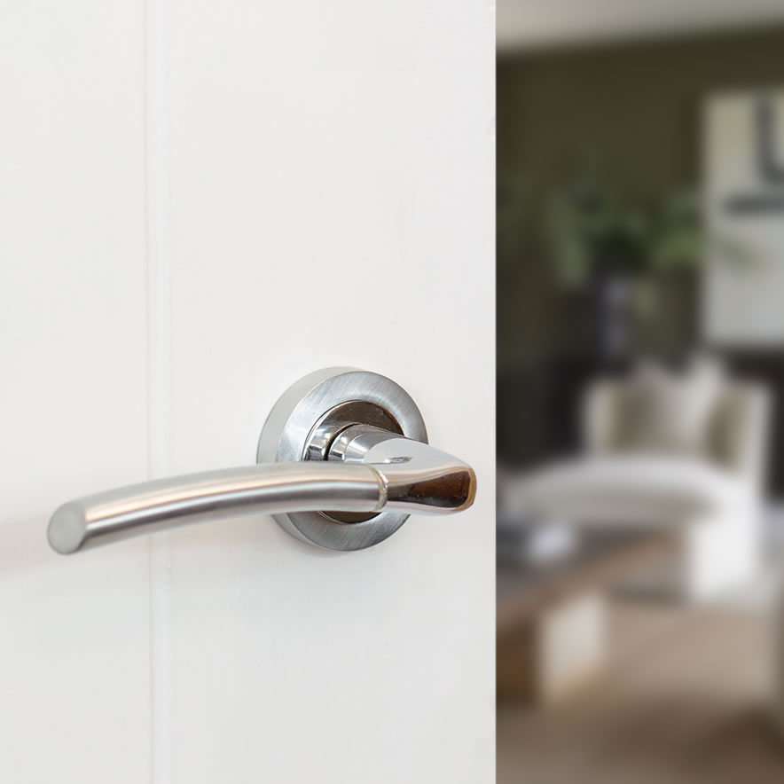 STATUS Indiana Lever Door Handle on Round Rose Satin Chrome/Polished Chrome