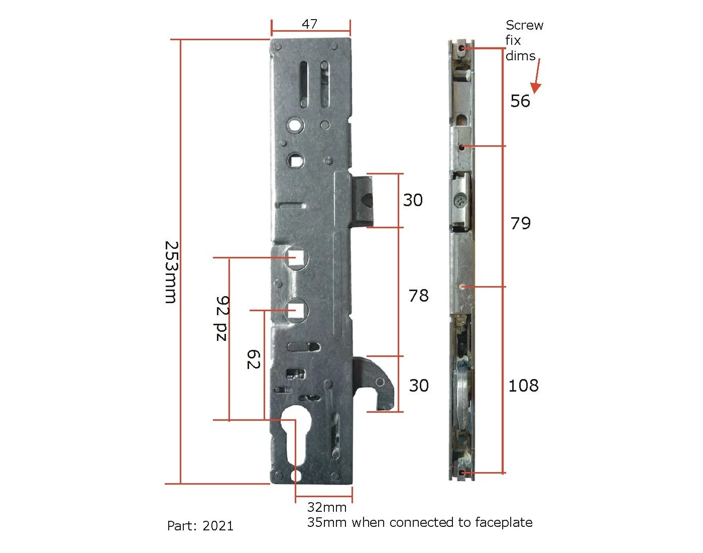 35mm backset with twin spindle centres, 92/62mm and reversible latch with hookbolt.