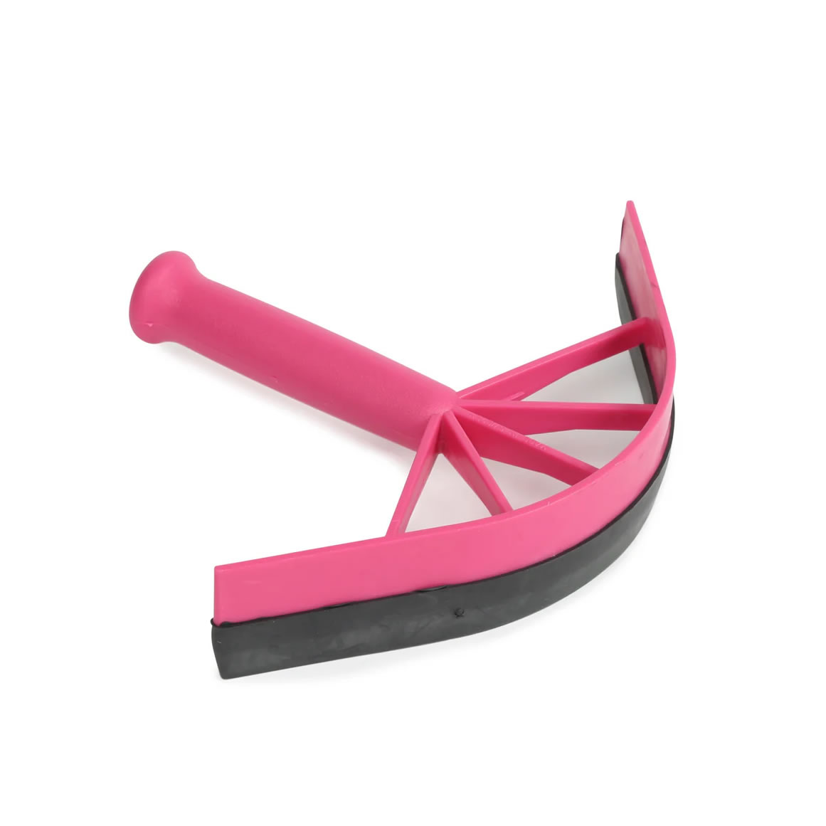 Sweat scraper with plastic body and rubber on one side to remove excess water from the horse's coat.