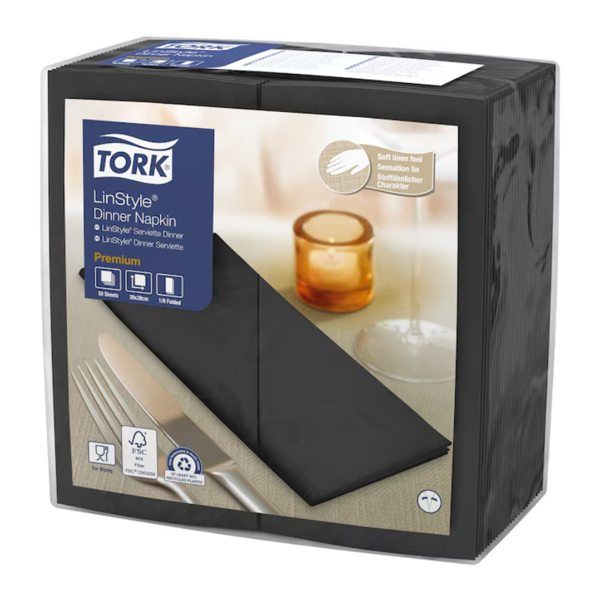 Tork Premium LinStyle Napkins support full-service restaurants, where quality is especially important to impress your guests. Looking and feeling like real textile, each napkin is noticeably softer and bulkier than standard paper napkins, while being extra absorbent.