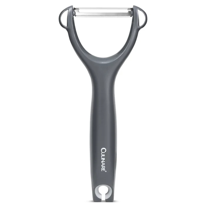 Tackle tough vegetables effortlessly with the Zyliss Wide Peeler. Its extra-wide stainless steel blade effortlessly peels through thick-skinned produce like aubergine, while the sharp point effortlessly removes imperfections.