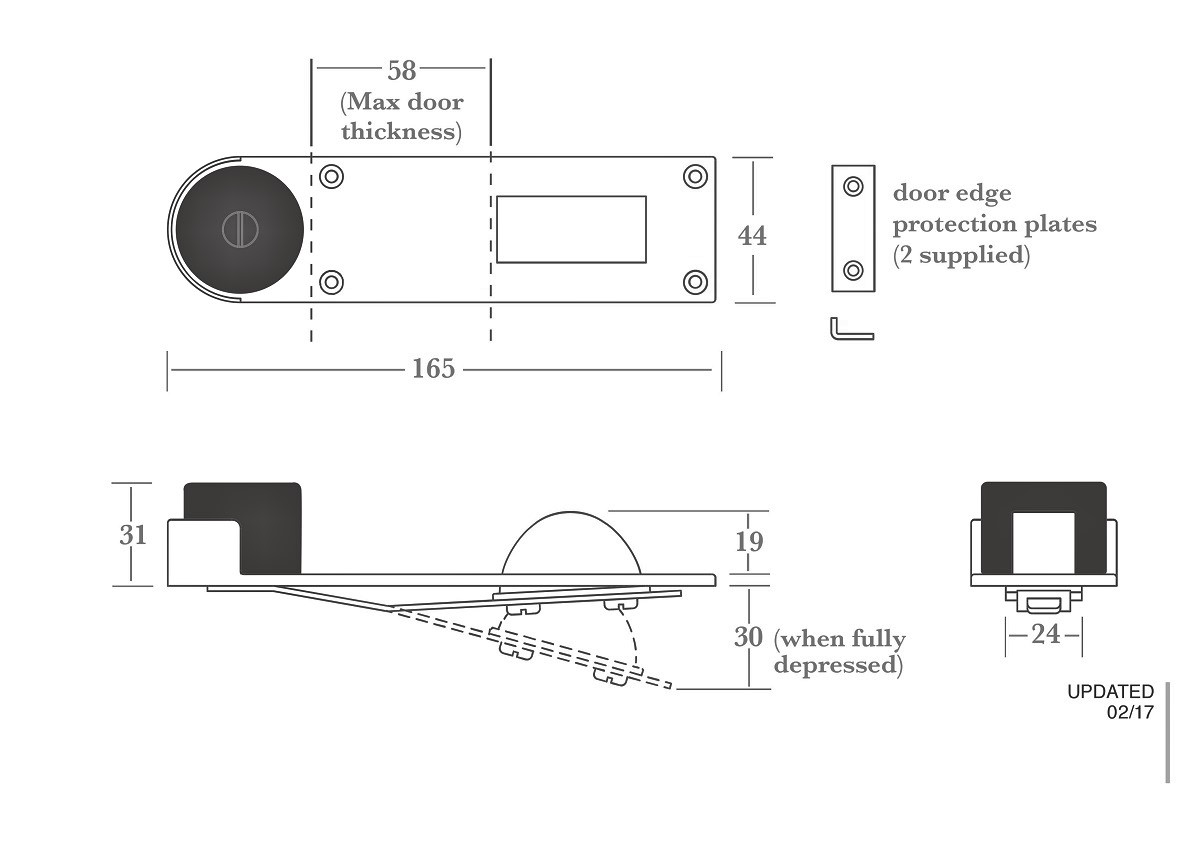 Supplied with two, finish matched, door edge protection plates.