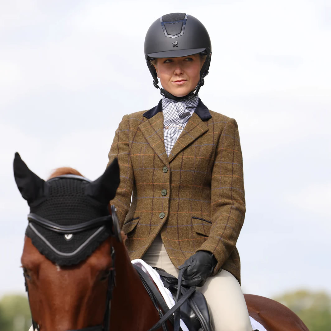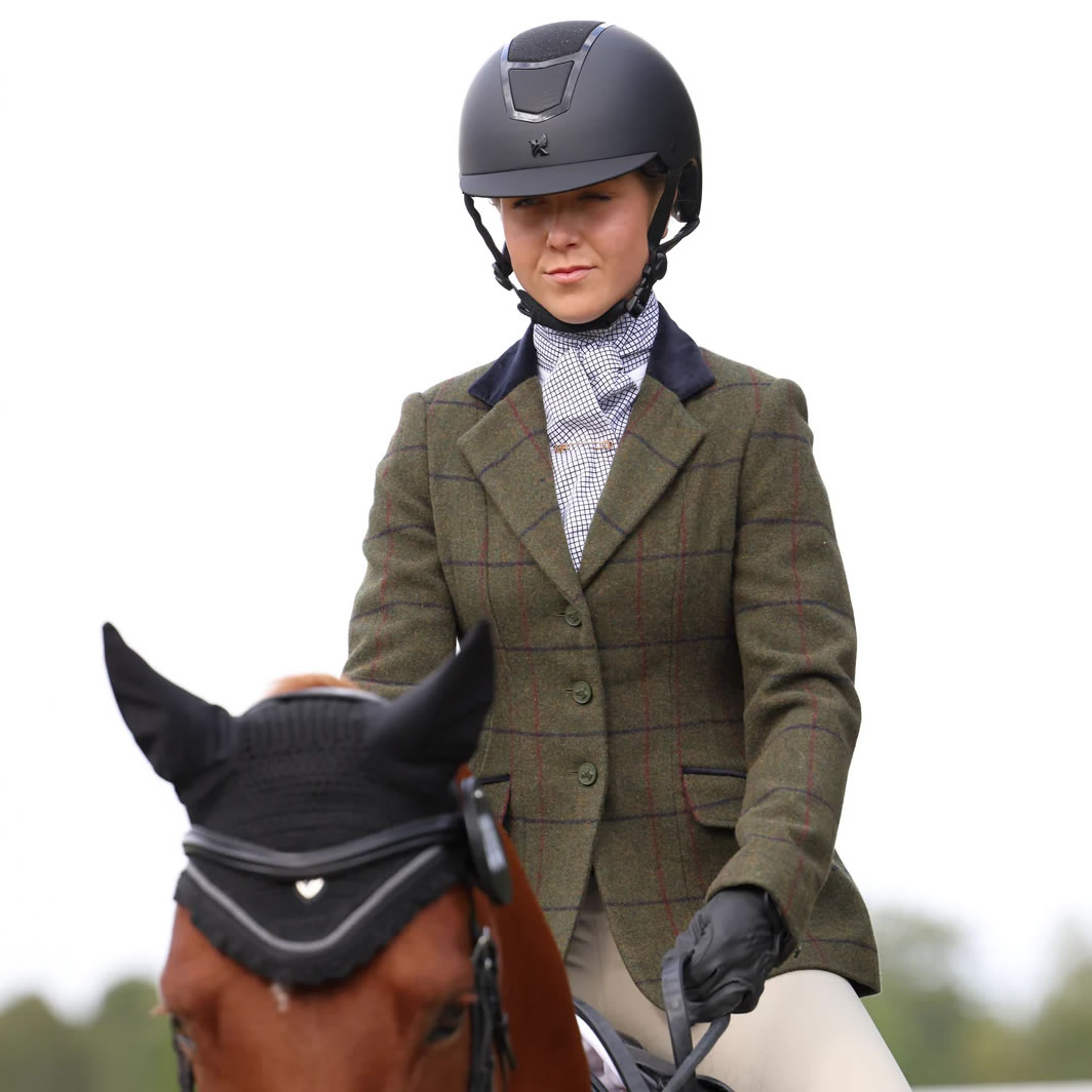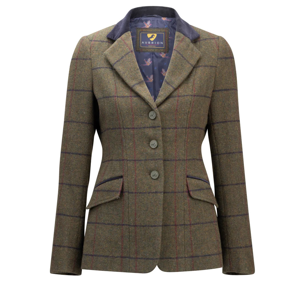 A timeless classic, the Aubrion Saratoga jacket is cut with a flattering modern contour fit, and tailored for free movement in the saddle. Attractive wool rich tweed cloth is complemented by velvet trims at the revere notch collar and pocket flaps, and elegantly finished with a full satin lining. Suitable for a range of disciplines from showing, competition and countryside pursuits. Style detail: wool rich tweed cloth, classic fit, velvet trims, fully lined, 3 button front fastening, button detail at the cuff and back vents, two flap pockets, full satin lining.