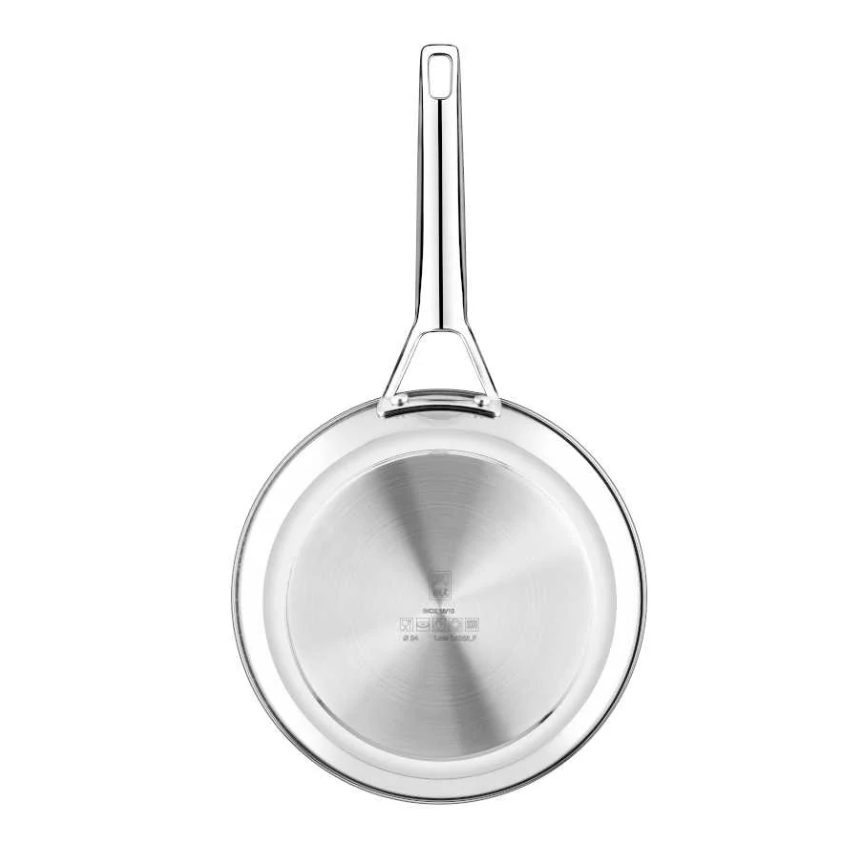 • Wide full induction diffuser base with a thickness of 5.3 mm and 5.4 mm (depending on size). Compatible with all heat sources including induction.