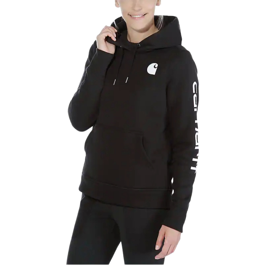 Cold winter mornings are a lot more comfortable with this women's cosy hoodie. Made of heavyweight fleece, the sweatshirt is brushed on the inside for extra softness. It has a relaxed fit that allows for easy layering, and it's finished with a Carhartt logo down the sleeve.