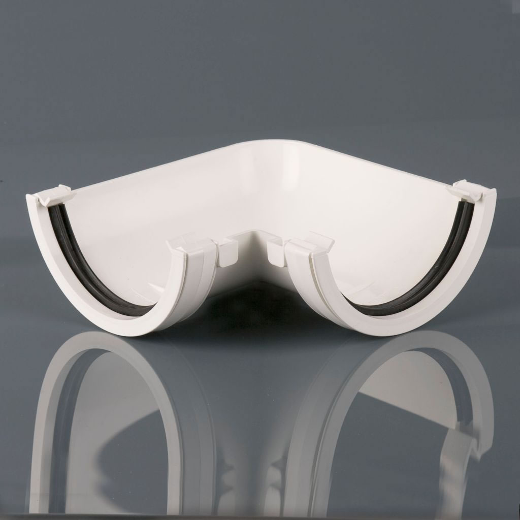 Designed to allow the continuation of the 112mm Roundstyle gutter system at 90° right angles. It features rubber seals and integral clips at both sides for fixing to the gutter.