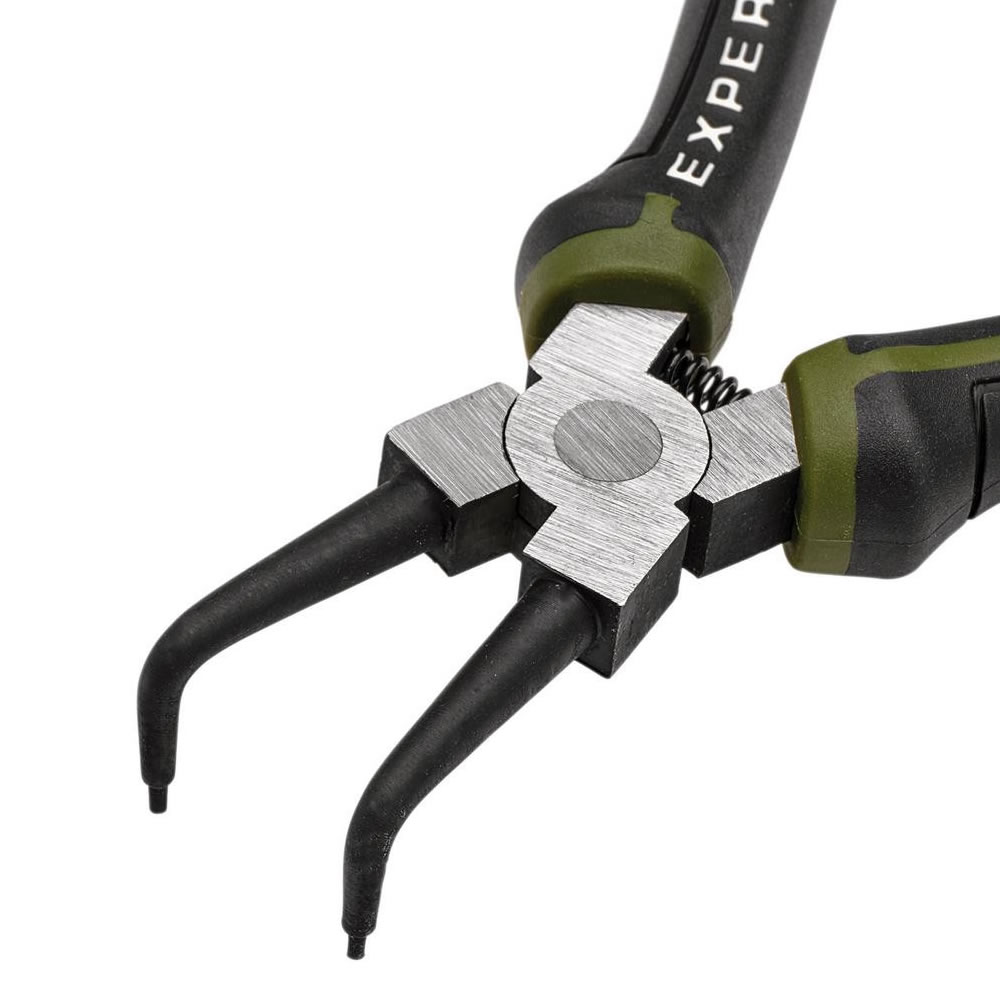 These bent straight internal circlip pliers are constructed from chrome vanadium steel, ensuring durability and reliability. The spring-loaded handles automatically open the pliers after each compression, while the precision-machined jaws improve grip. The heads are electrophoretically plated for superior corrosion resistance. Additionally, the soft grip handles provide improved comfort and a better grip.