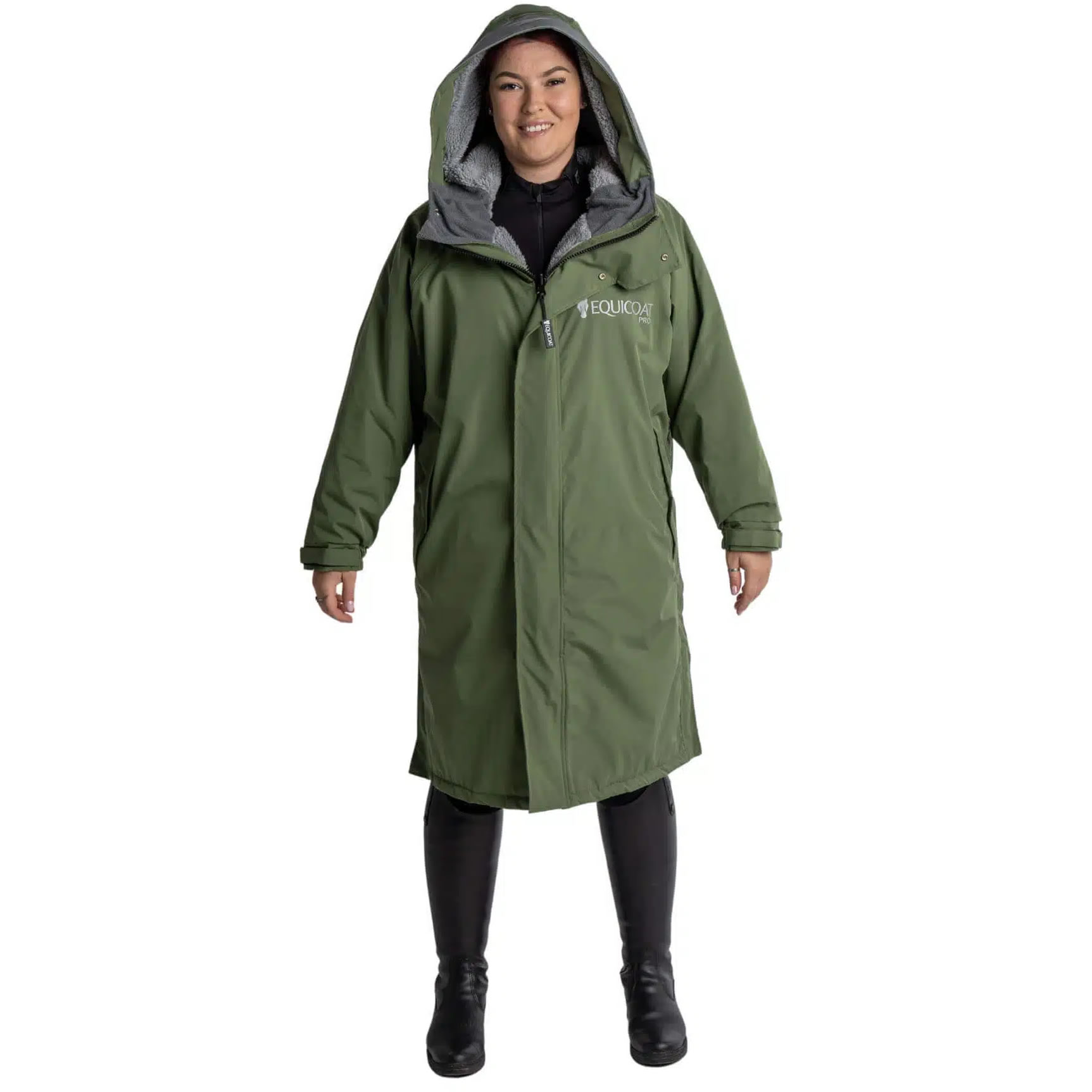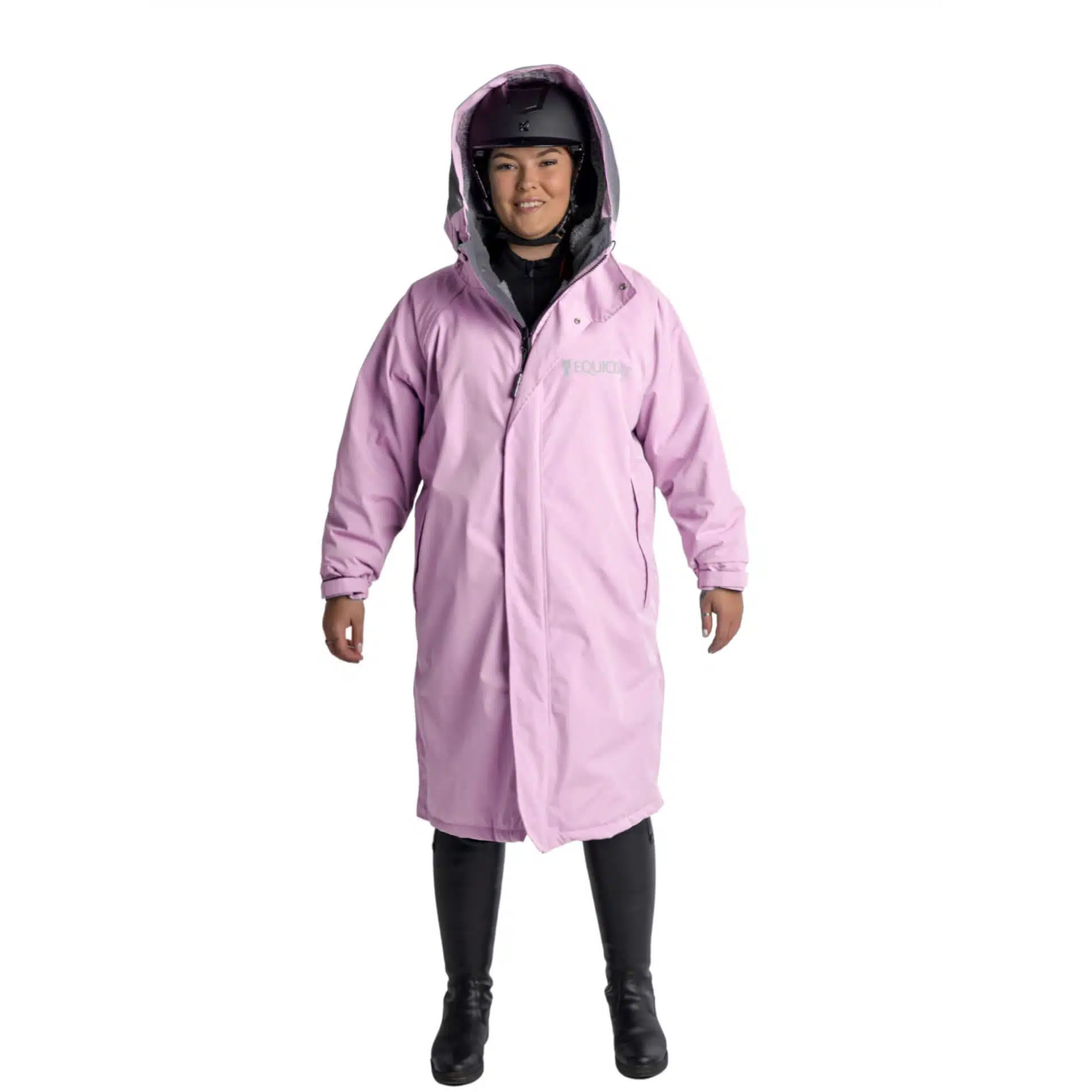 - Riding Hat + Rain Peak - Equicoat Pro features a multipurpose hood that can be used over a riding hat. The hood is fleece lines except the last couple of inches on the peak to stop the fleece getting wet.