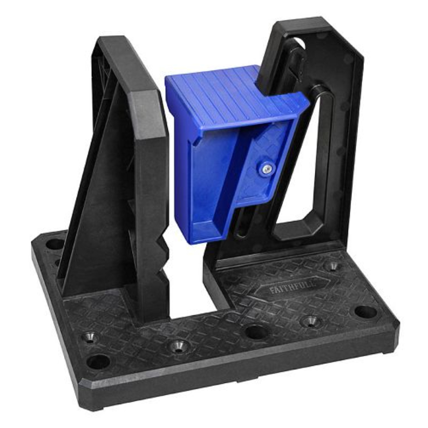 The strong grip holds materials up to a width of 55mm (2 ¼in) making it ideal for working on FD30 and FD60 fire doors. Simply push the grip out of its holder and securely lock onto the side of the object, this can be done with a hand or foot depending on the application it’s used for. The sturdy base can be used on table-tops and floors, with the added benefit of support screw holes that can secure the base in place when used with heavy objects.