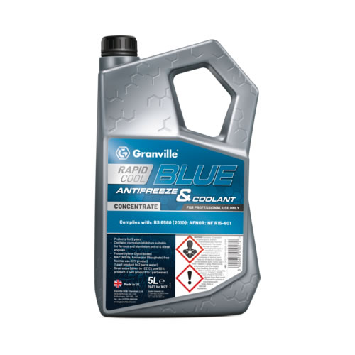 Granville Rapid Cool Blue Antifreeze and Coolant is a Monoethylene Glycol based antifreeze that does not contain nitrates,amines or phosphates. Rapid Cool Blue Antifreeze contains corrosion inhibitors suitable for aluminium engines and is suitable for use in petrol and diesel engines.