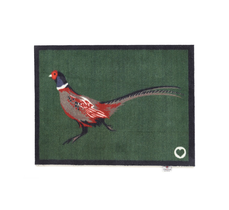 The Pheasant Green 2 mat is from their Country collection, these characterful designs have been created by their designers using inspiration from the great British countryside. This design has a beautiful forest green background with a pheasant centred in the middle of the mat facing the left with a charcoal border. The runner has a pheasant centred to the left side of the runner with an array of white hearts trailing off to the right. They are sure that you'll love this design in your home as much as they do in their own homes.
