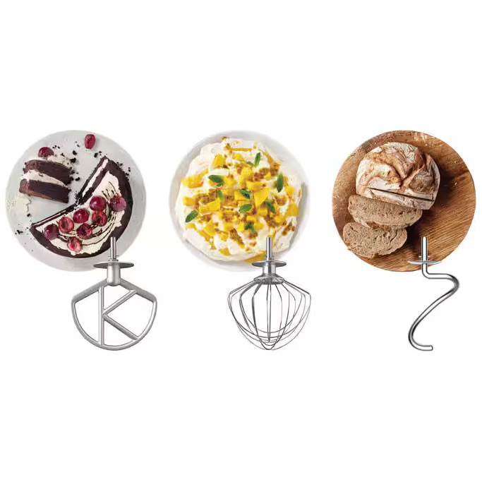 • In bowl power outlet with K beater, balloon whisk and dough hook