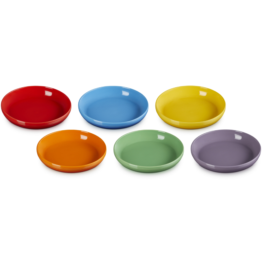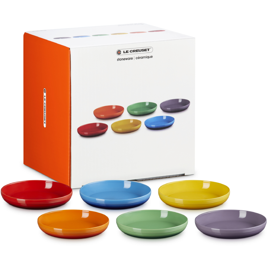 Serve comfort with colour. This set of six stoneware pasta bowls features wide, gently sloping sides ideal for pasta, risotto, salads, or desserts. Each bowl showcases one of Le Creuset's signature rainbow hues, bringing playful sophistication to your table. Gift-ready and beautifully boxed, it’s a vibrant treat for cooks, hosts, or anyone who loves to dine in style.