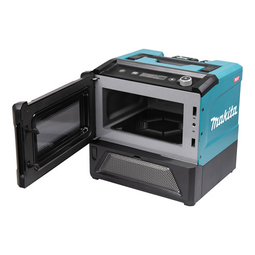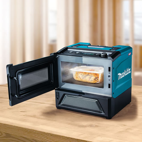 Part of Makita’s XGT cordless tool and appliance lineup, this portable microwave is the perfect addition to your worksite. It’s designed to heat up your food and drinks on the jobsite, or anywhere mains power isn’t available. Using a single or two powerful 40-volt battery, it can heat up to 11 meals or 20 cups of coffee on a single charge. Plus, with a 500W output, it can heat up your meals and drinks just as well as a corded domestic microwave. The Makita MW001G cordless microwave has an 8-litre capacity with cavity dimensions which will allow popular-sized food containers will fit with no problem. It also has great battery runtimes, so you can heat up your breakfast, lunch, snacks, and drinks for a full working day. Plus, it’s extremely robust, making it perfect for harsh job site conditions. The Makita MW001G fits in seamlessly with Makita’s XGT line, which means that the same batteries that power this unit can also work in the rest of your Makita XGT kit.
