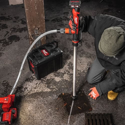 • Pumps more then 2000 l/hour and up to 1000 l on 1x M12 6.0 Ah battery, perfect for emptying trenches, storm drains, outside meter boxes, rain barrels and various other applications