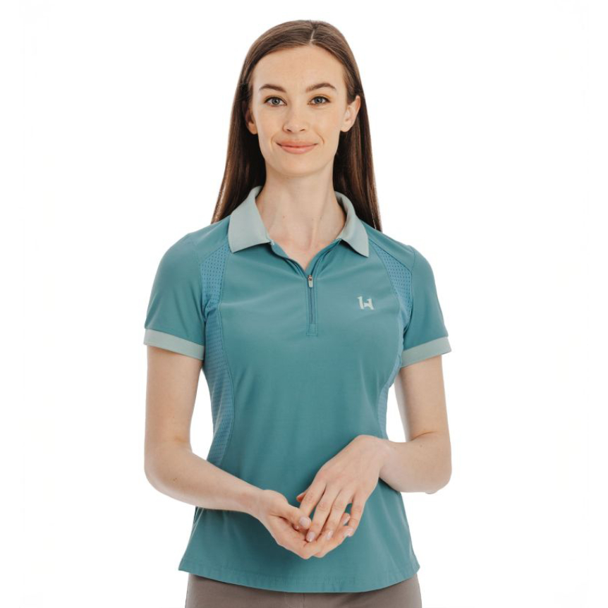 Stay cool and comfortable in the Horseware Tech Polo, crafted for performance and style. Lightweight, 4-way stretch fabric wicks moisture and dries quickly, while perforated underarm panels enhance ventilation during intense activity. The fitted cut, ribbed cuffs, and collar with tonal trim create a sleek, athletic silhouette, and a subtle zip closure adds a modern finish. Ideal for training, competition, or everyday wear.