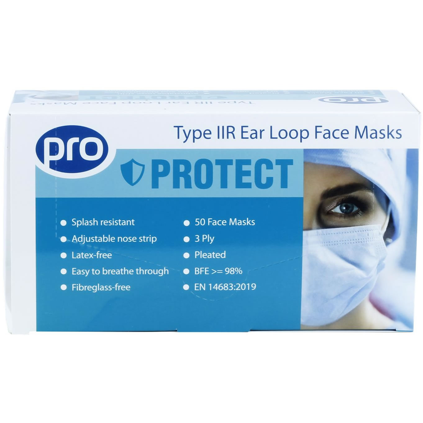PRO Type IIR Ear Loop Face Mask Fluid Resistant 3PLY (50)