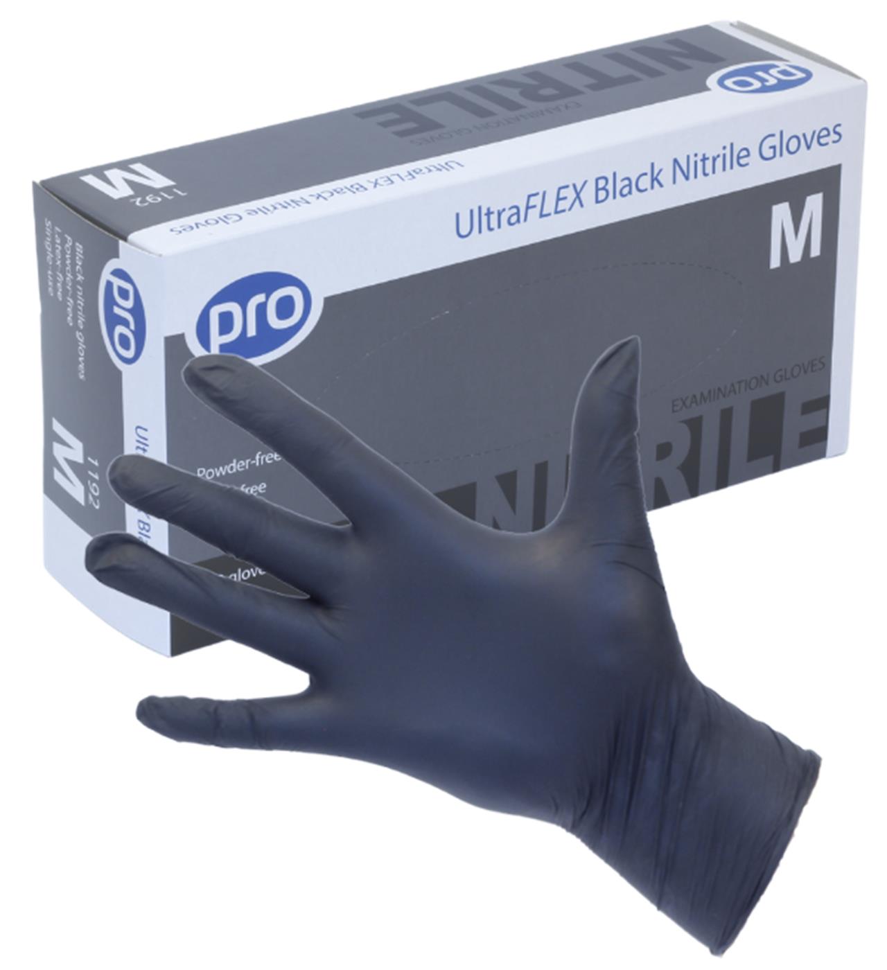 Pro Ultraflex Black Nitrile Powder Free Gloves (100)