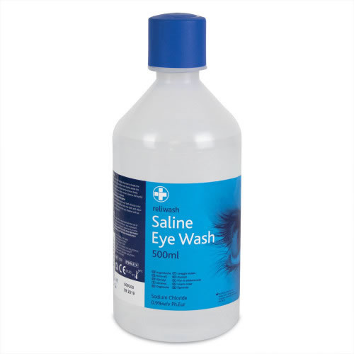 Sodium Chloride 0.9%w/v Ph.Eur eye wash is used for the irrigation of eyes to remove foreign bodies such as dust and dirt. Sterile, safe, and non-toxic; the 500ml Eye Wash is ideal for incidents that require a larger ammount of eye wash.