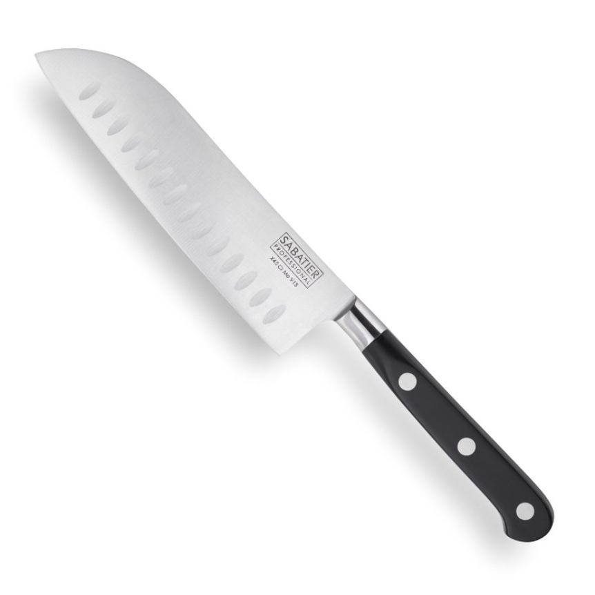 Sabatier Professional kitchen knives are produced using a traditional bolster and a full tang, 3 rivet construction; a design which dates back over 150 years and has its roots in Thiers, France. These precision knives are produced from high quality taper ground stainless steel, creating a blade that is difficult to blunt, but easy to sharpen.