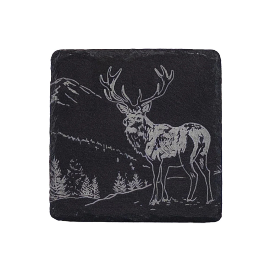 Add a refined countryside feel to your table with this Single Slate Coaster featuring a scenic stag illustration. Crafted from high quality slate, this piece is both decorative and functional.