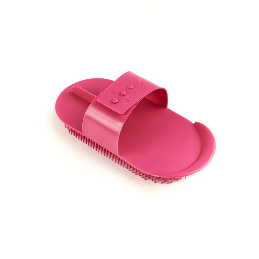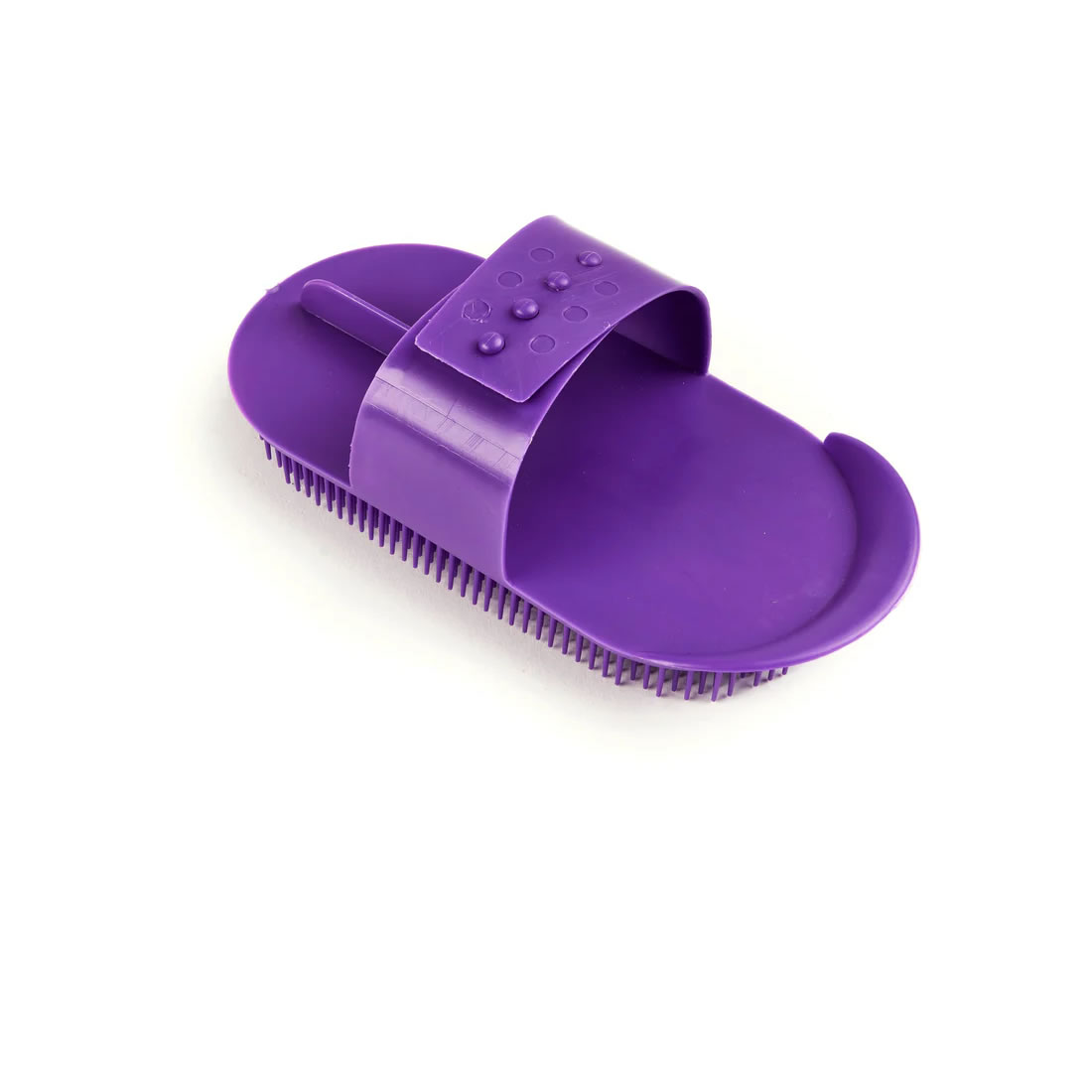 The plastic curry comb can be used to remove mud from winter coats but should not be used on clipped or fine coated horses.